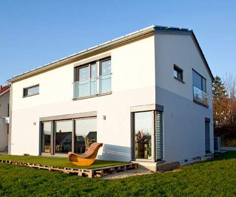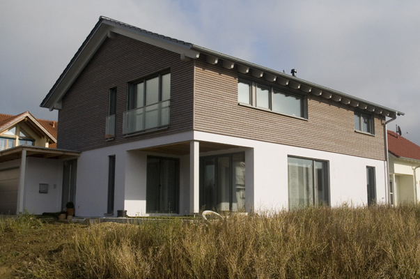 Modernes Holzhaus in Kerkingen, Niedrigenergiehaus mit Wärmepumpe und Photovoltaik